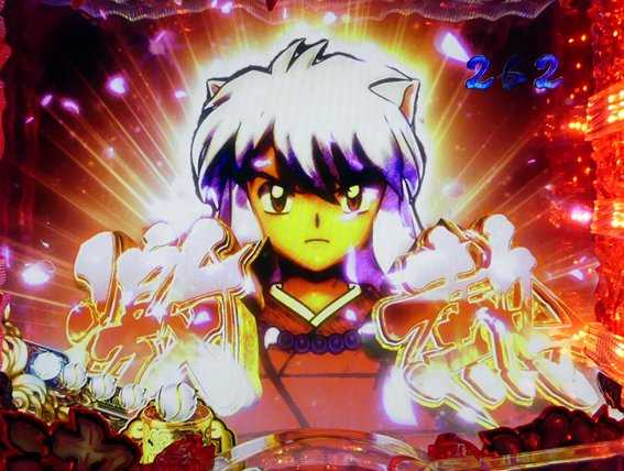 リーチ後に犬夜叉が現れ、「激熱」の文字が出現する大チャンス演出だ。