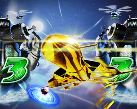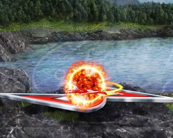 ウルトラホーク予告で ウルトラホーク3号がUFOを撃墜し 赤色の「撃墜文字」が出現 |