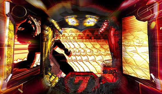 決戦リーチ発展前などに発生。筐体上部からセブンフェイスが飛び出して信頼度超絶アップ!