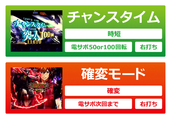 確変大当り終了後に突入し、次回大当りまで電サポが継続。2種類の演出モードがあり、直前の大当り終了時に選択できる。