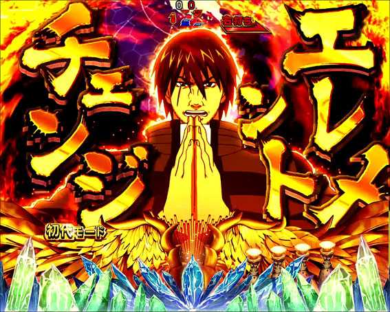 初代モード中に図柄が揃うと、ソーラーアクエリオンが祈願拳で確変昇格を狙う再抽選演出が発生。祈願拳ではなく祝福拳が発生すれば昇格濃厚だ!