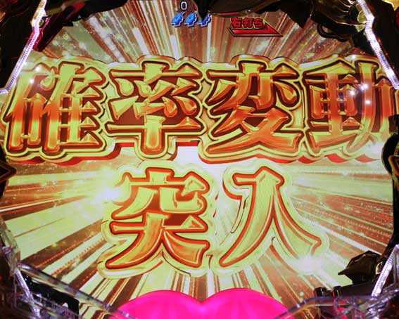 電サポ中に赤図柄がシングルラインで揃うと発生する、4Ror8Ror16Rの確変大当り。突入時に獲得出玉(ラウンド数)が決定される。終了後は確変モードに突入する。