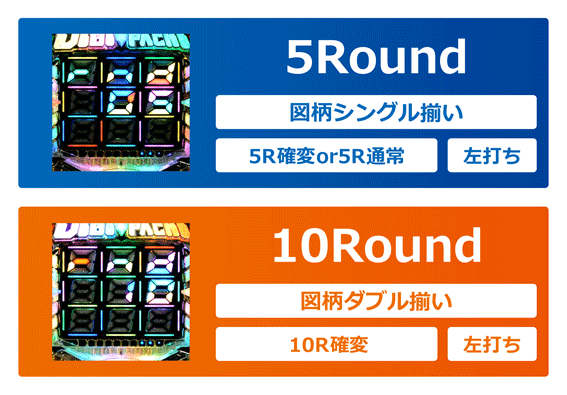 同一図柄がシングルラインで揃うと発生。揃う図柄が3or7なら5R確変、3or7以外なら5R確変or通常となる。また、ラウンド中に昇格演出が発生して5R確変や10R確変へ昇格する可能性もあり。