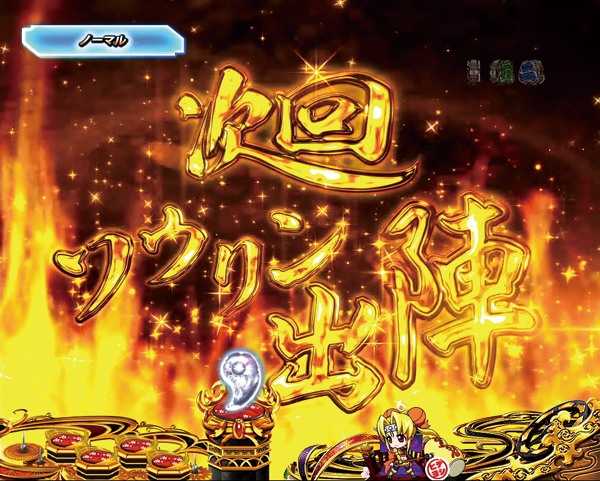必殺技を繰り出せば大当り濃厚となるが、過去シリーズのように必殺技を繰り出さなくても大当りの可能性は残る!? このリーチもロングリーチ同様、2R確変当選に期待すべきリーチといえる(小田原征伐RUSH中は除く)。なお、2R確変は必殺技不発から当選する可能性がある。