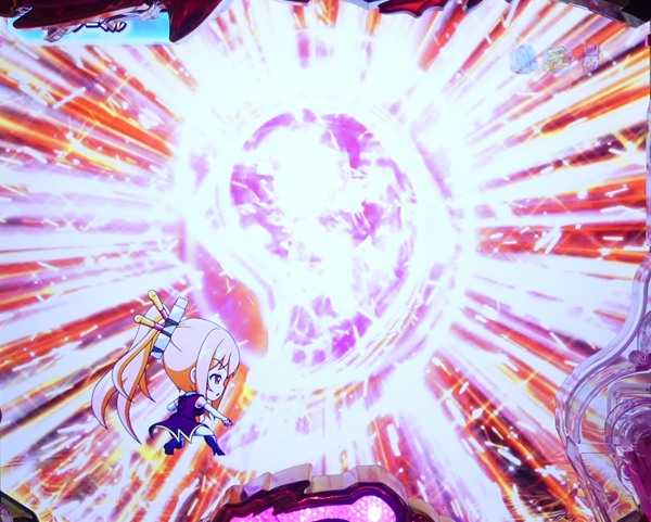 変動中の非情ノ大剣役モノ作動から発展する可能性があるプレミアム回想リーチ。エンディングor白き剣聖の2種類が用意されており、どちらの場合でも7図柄大当りが濃厚となる。