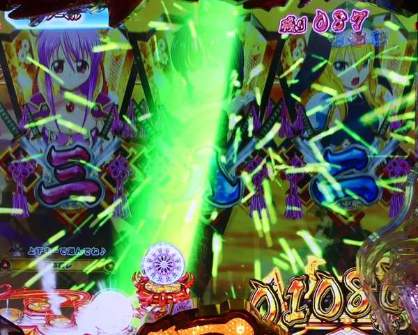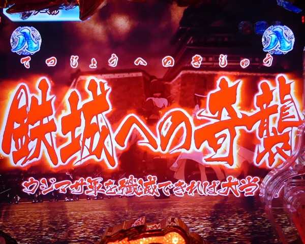 リーチ後に非情ノ大剣役モノが作動すれば、高期待度のストーリーリーチ発展に期待できる。天魔翔竜では、ノブナガ&マサムネがウジマサを倒せば大当りだ。