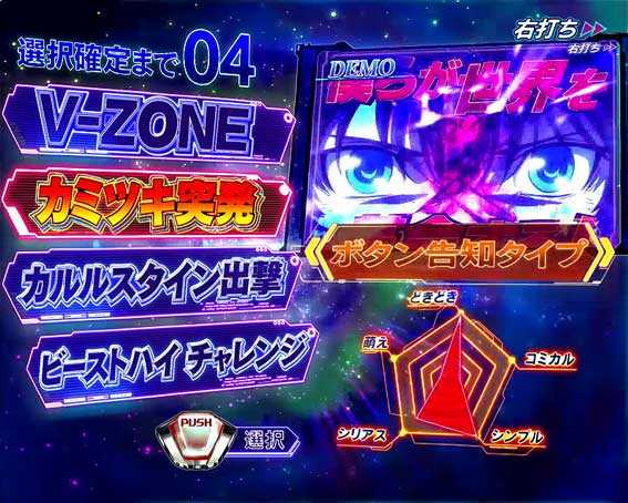 バトルリーチは2パターンあり、カインとのバトルを繰り広げる「未来への革命」の方が信頼度が高い。ただし、「革命の夜明け」もチャンスアップ次第では充分大当りが期待できる。
