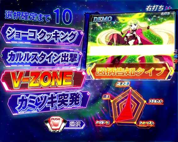 ヴァルヴレイヴ1号機がみずからの腹部に剣を突き刺せば大当りとなる激アツリーチ。チャンスアップは存在せず、発生時点でアツい。