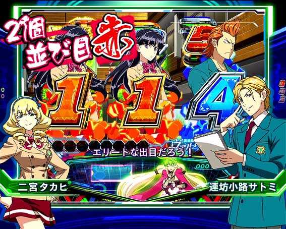 ショーコの言葉に生徒たちが奮い立てば大当りとなる高信頼度リーチ。チャンスアップが複数あるが、デフォルトでも期待大。