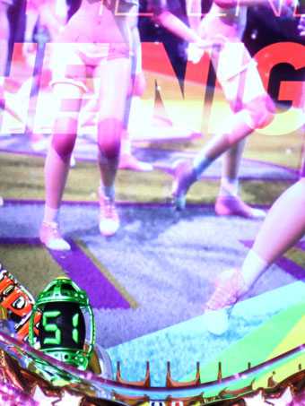 液晶にアメフトボウルが突き刺さるとV通過での大当りが濃厚に!?