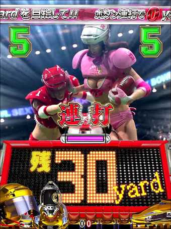 3回の攻防後、ファイナルチャンスにてボタン連打でタッチダウンできればセクシーボウルゲーム継続!