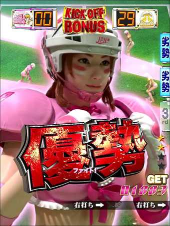 また、電サポ中に当たるとキックオフボーナスが発生。ボーナス中のバトルで勝利できればセクシーボウルゲーム移行、敗北でサップゲーム移行となる。