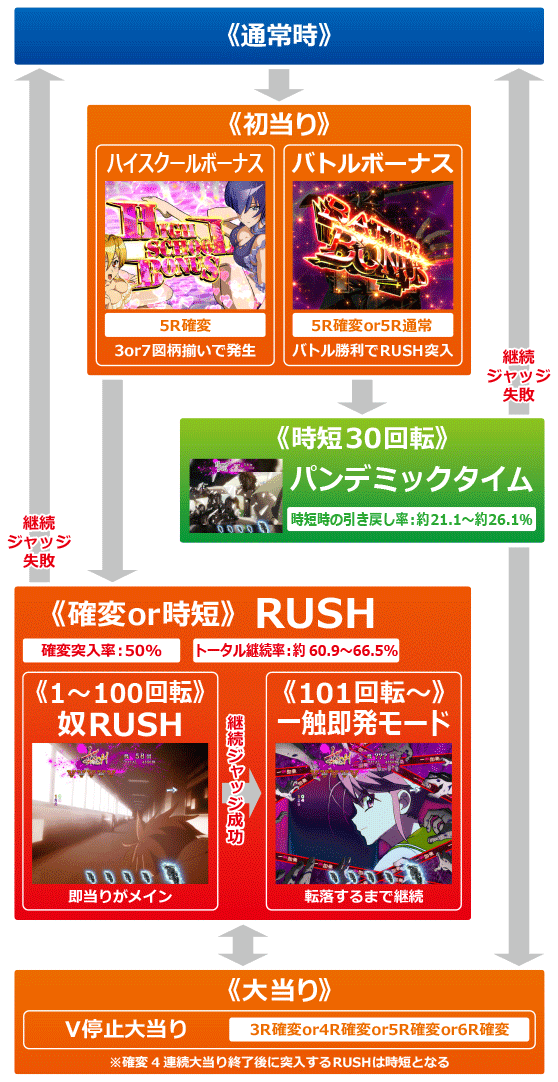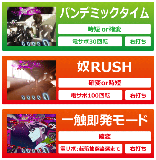 3or7以外の初回図柄揃い大当りはバトルボーナスとなる。ラウンド中は〈奴ら〉とのバトルが展開し、勝利すれば5R確変&RUSH突入、敗北なら5R確変or通常となりパンデミックタイムへ突入する。