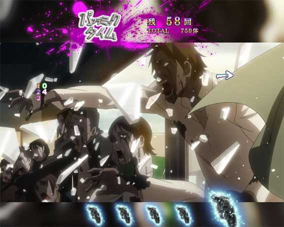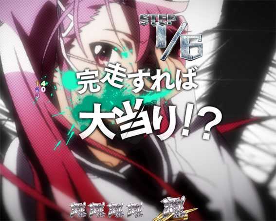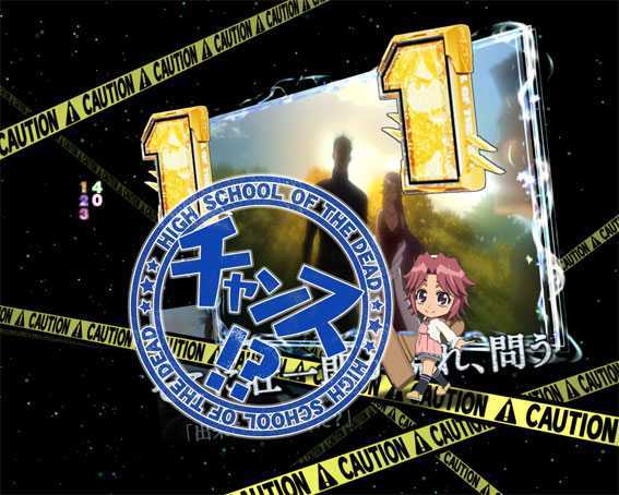 学園黙示録リーチ前半は全6種類。前半終盤でロゴ役物が可動すれば後半発展&信頼度アップとなる。
