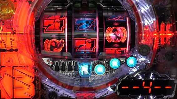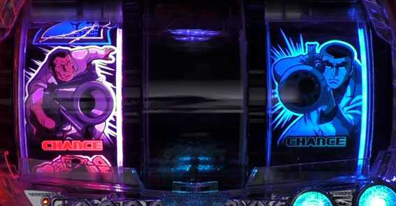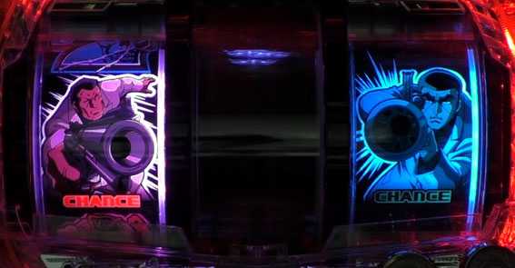 チャンスアップ強 (ドラムバックライト赤&7セグ「ATSUI」) |