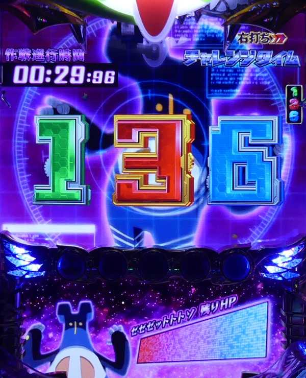 通常時にも電サポ中にも当選する可能性がある3R確変or3R通常で、大当りの大半を占める。大当り終了後は、通常時ならチャレンジタイムに突入し、電サポ中ならバトルラッシュに突入する。