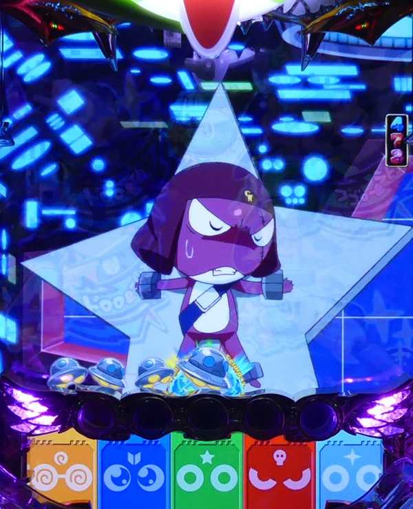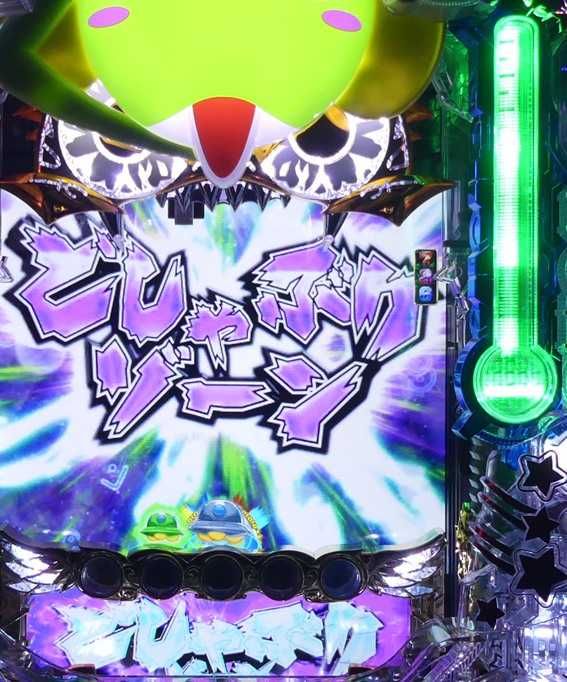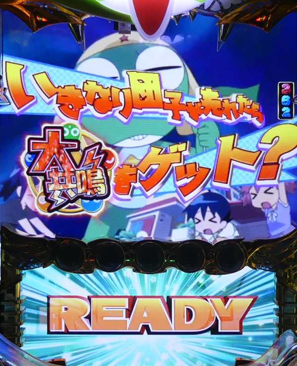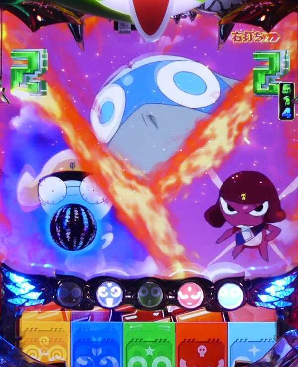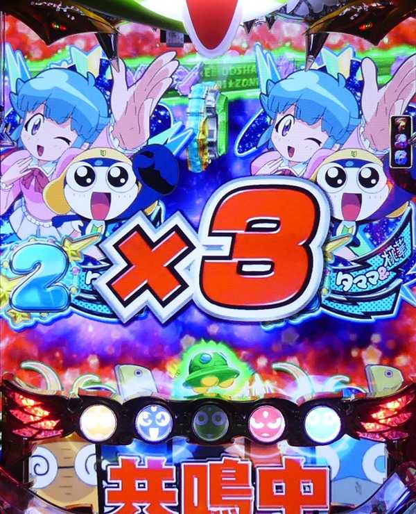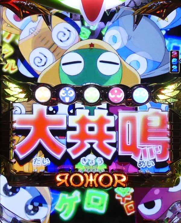 人気アニメ「ケロロ軍曹」のタイアップ機で、スペックは確変ループタイプ。大当り確率1/119.81、確変突入率50%、時短回数は30or50回で、甘デジタイプながら電サポ中は2000発獲得の16R大当り割合が15%と高いところが特徴だ。