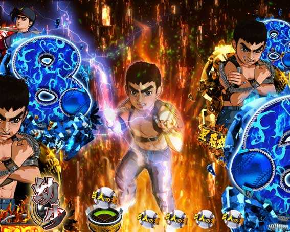 リーチ後演出 | ・情熱燃焼連続演出 ・投球予告 ・巨人の星予告 |