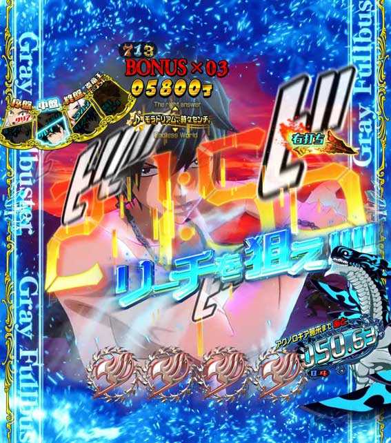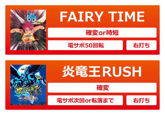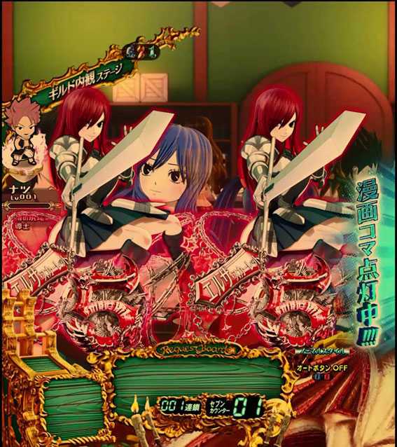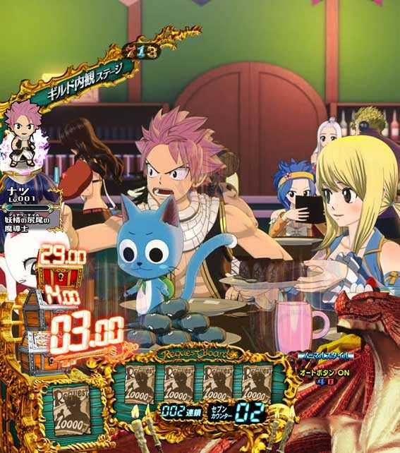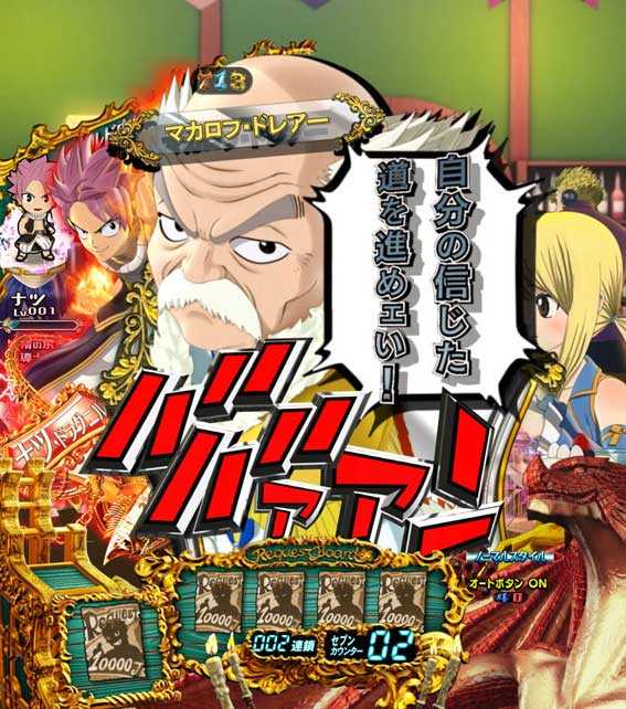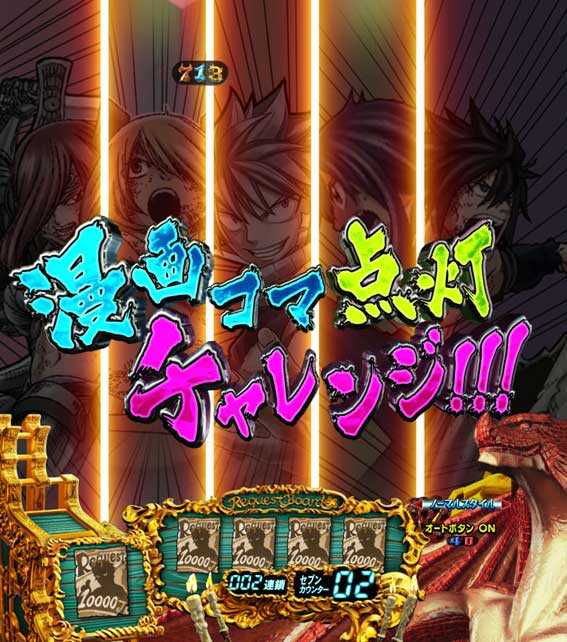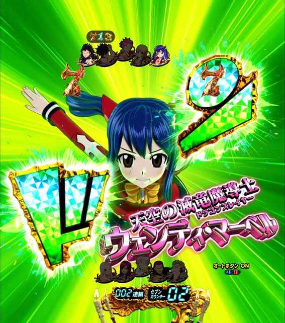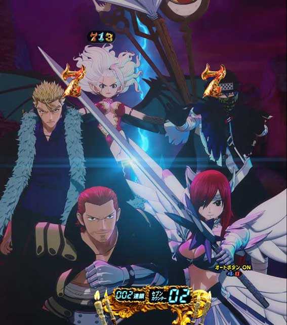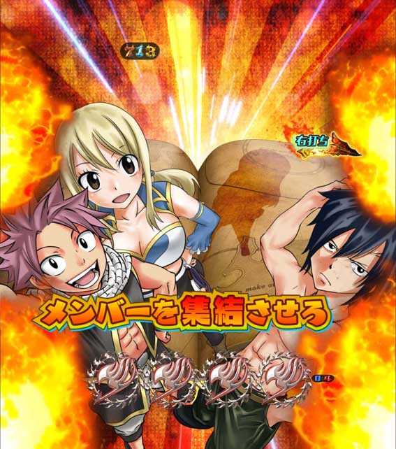 フェアリーテイルに所属する魔導士が全員集まれば大当りとなる特殊リーチ。ドンチャンス目停止後のドンギミック落下から発展する可能性あり。