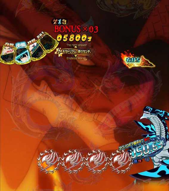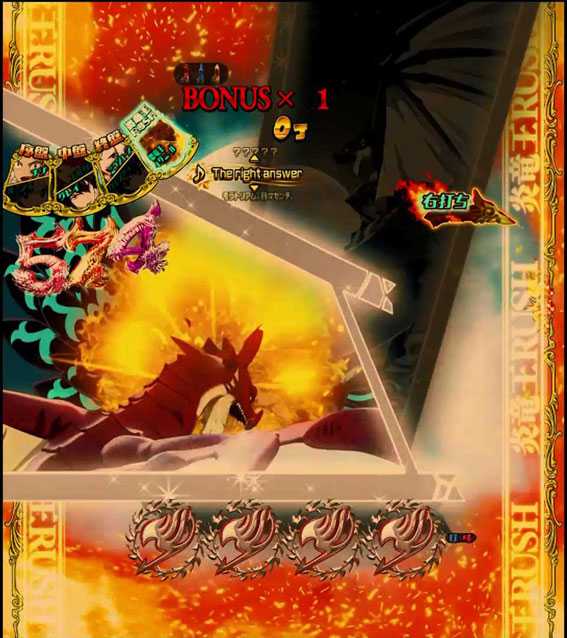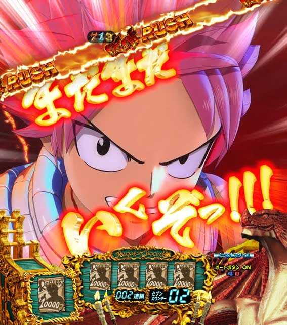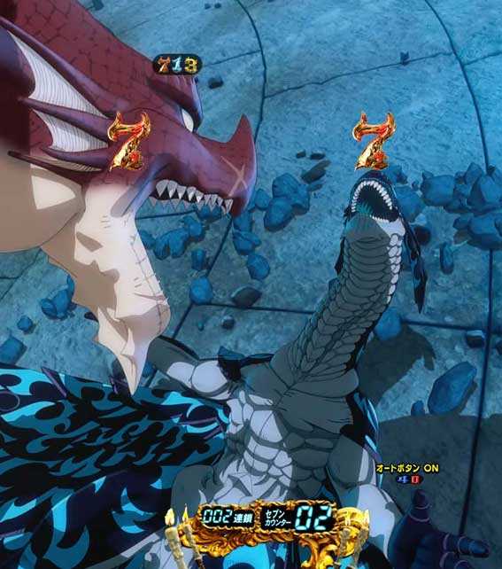 ドラゴンスレイヤー予告で図柄が完成すると発展。ナツら3人の滅竜魔導士が協力してドロマ・アニムの撃破に臨む。