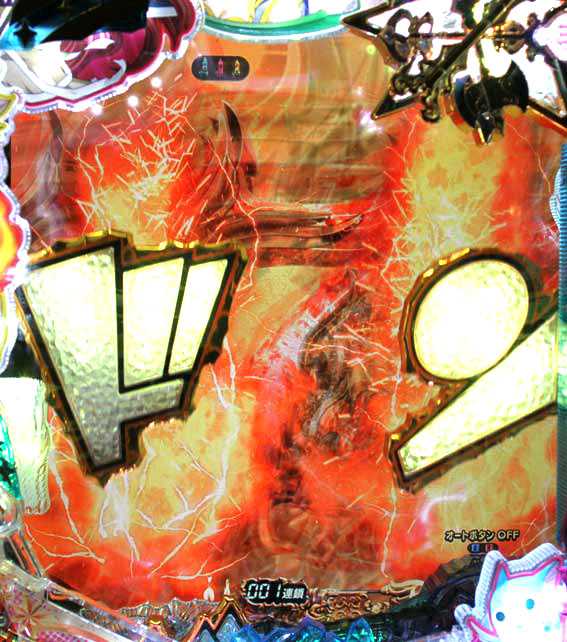 バトル勝利で大当りとなるスーパーリーチ。いかに金やDANGER柄チャンスアップが出現するかがポイントだ。また、リーチ導入部で炎竜王が登場して炎竜王VS闇の翼へ発展することもある。