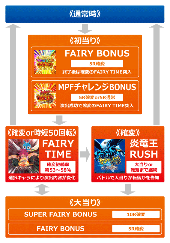専用の煽り演出を経てドンギミックが落下すると発生。決勝でルーシィがエルザに勝てば大当りだ。オーディエンスの声援がステップアップするほど信頼度も上昇する!?