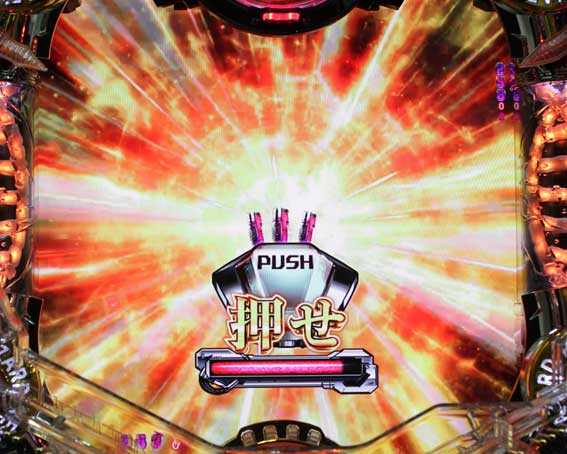 図柄揃い直後に発生。ボタンPUSHで3or7図柄揃い昇格を狙え!