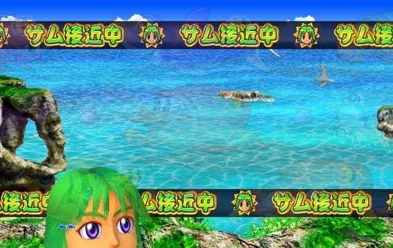回転開始時に赤クマノミが3匹出現すると、次変動でサムの出現を煽る「サムスタンバイ予告」が発生。保留内でサムが出現し、最終的に10R大当りに当選する。