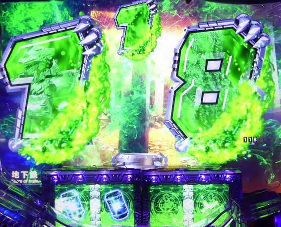 通常時の青&緑図柄揃いを機に突入する11R確変or通常。ゴジラボーナス終了後のSTゴジラBOOSTは時短である可能性が高いが、STの可能性もある。