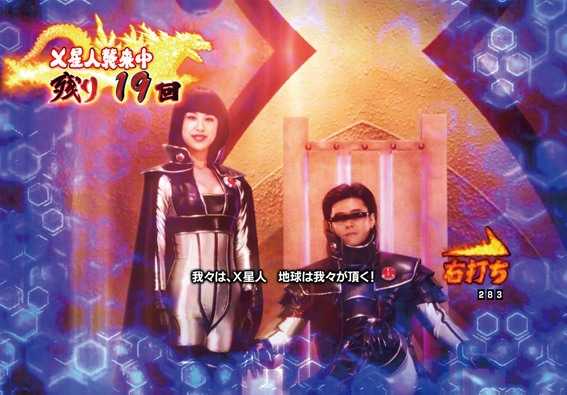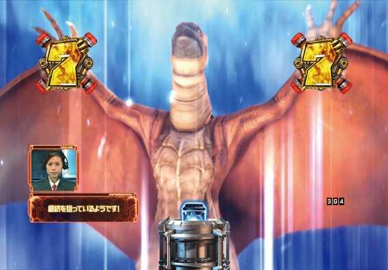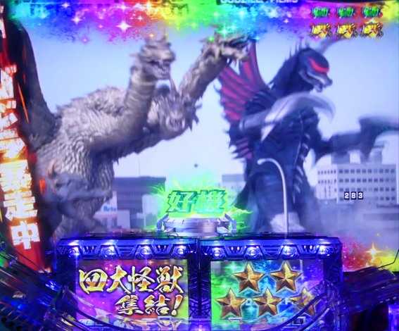 東宝の特撮怪獣映画とのタイアップ機でシリーズ5作目。スペックは大当り確率1/289.98、確変突入率65%(電チュー82%)・104回転まで継続するST機だ。大当り終了後は電サポ100回転の「STゴジラBOOST」に突入、「ゴジラバトルモード」と「G-FORCEモード」の2種類の演出モードから選択できる。またSTラスト10回転はどちらも「カイザーバトルモード」に突入する仕組みだ。