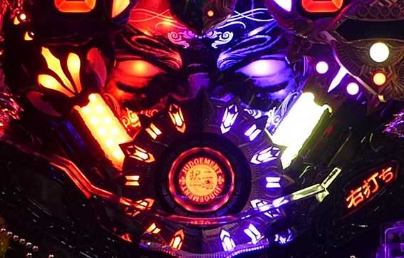 本機は七匠のパチンコ第3弾で、液晶非搭載の完全オリジナルマシン。スペックは大当り確率1/309.13、時短「究極神判」突入率1/2の1種+2種タイプ。大当り後は主にラウンド中の「降臨チャレンジ」で時短突入が決まる。突入率は1/2で、見事成功すれば時短1回+保留1回の「究極神判」へ。究極神判は「1stジャッジ」「2ndジャッジ」の2回のチャンスがあり、どちらも成功率は50%。さらに大当りすればALL2025発で、究極神判も継続となる。