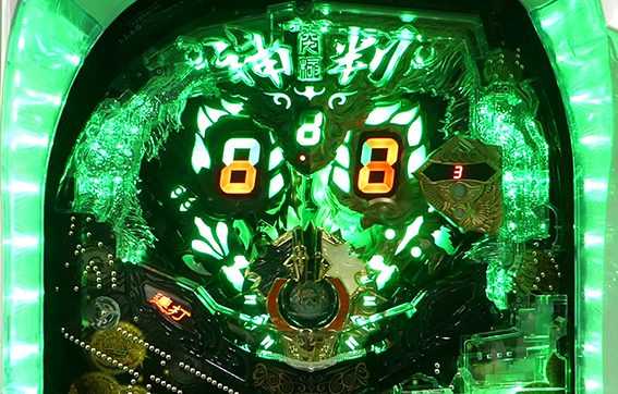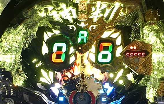 リーチ直後に枠ランプがマグマのように光ればJUDGEMENT発展濃厚となるだけでなく、信頼度が約80%に!? 七匠の大チャンス柄であるマグマ柄を再現した演出だ。