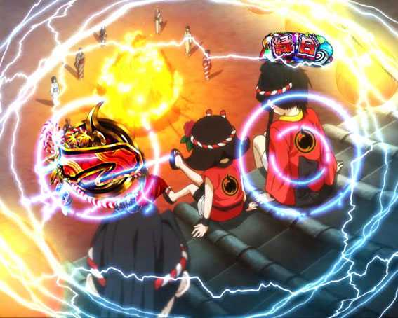 7以外の図柄揃い後は再抽選演出が発生。役モノが作動すれば7図柄揃い昇格となり、通常時なら時短50回転濃厚で、前夜祭&真お祭りRUSH中なら夢幻RUSH突入濃厚だ。