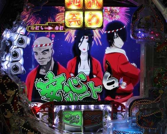 演出では「地獄祭りカットイン」「地獄祭り目停止」「打ち上げ花火レバー」の獄アツ演出が発生すれば信頼度90%オーバーだ。