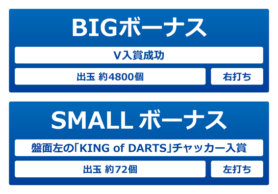 盤面左の「KING of DARTS」と書かれたチャッカーに玉が入ると発生。左打ちで約72個の出玉を獲得できる。