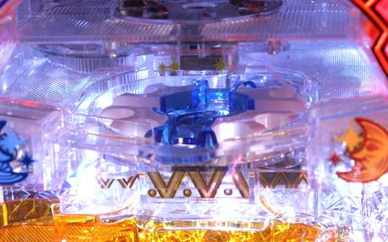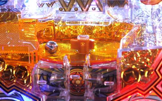 中央の穴に玉が入ればSPルートとなり約1/2で下段クルーンへ。回転体に玉が弾かれるとノーマルルートだ。