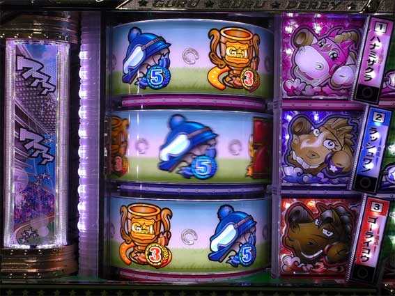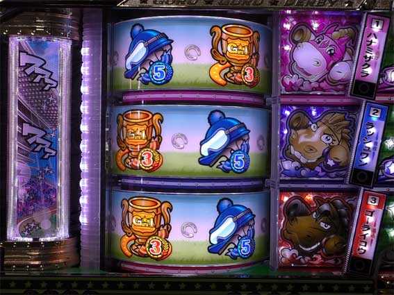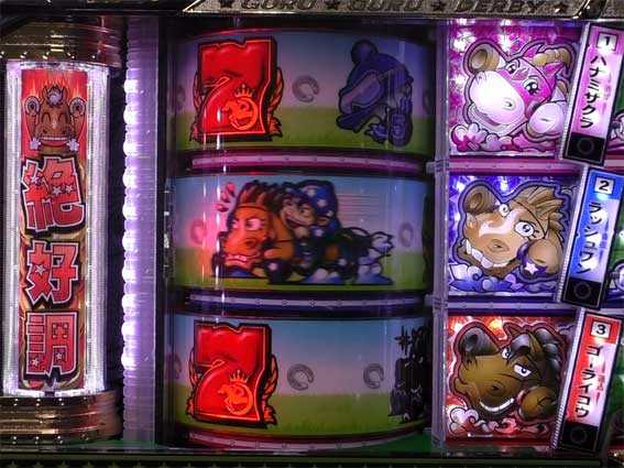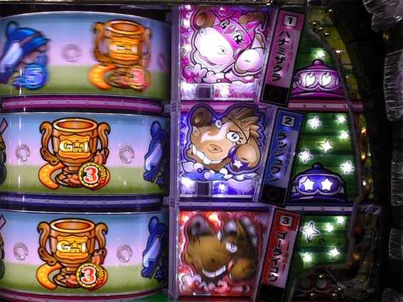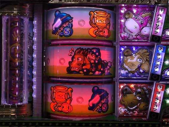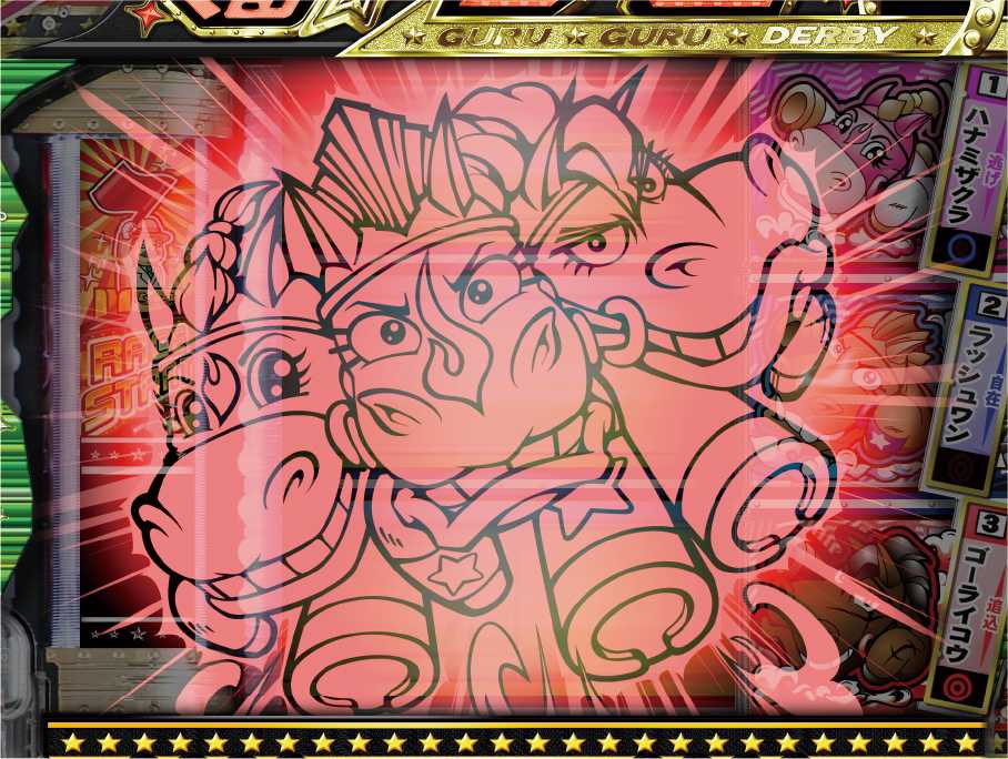 変動中演出 | ・リールロック予告 ・馬レリーフステップアップ予告 ・ぐるぐるチャンス |