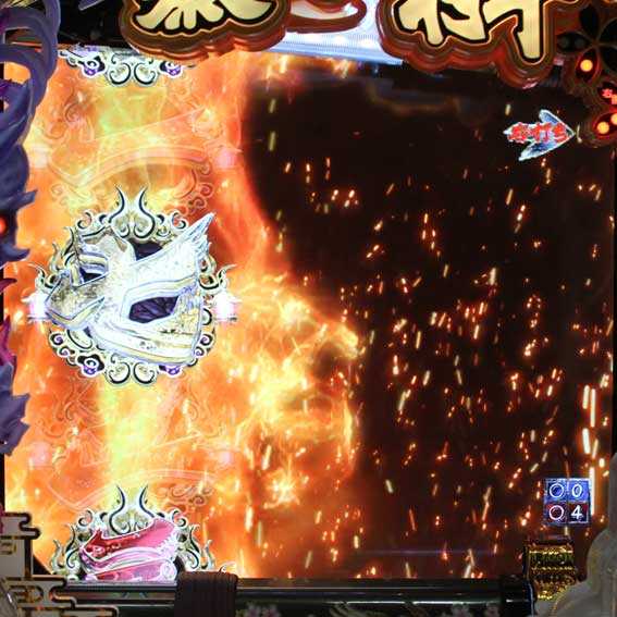 奇数図柄テンパイ成功時や、殲鬼チャレンジ中の峰返し図柄停止などを機に発生。最終的にボタンPUSHで大家紋ギミックが完成すれば大当りだ。
