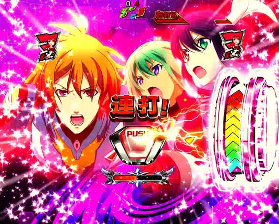 リーチ発展後はボタン連打でメーターがMAXになれば大当り。最終エフェクトの色が赤以外だと超激アツに!