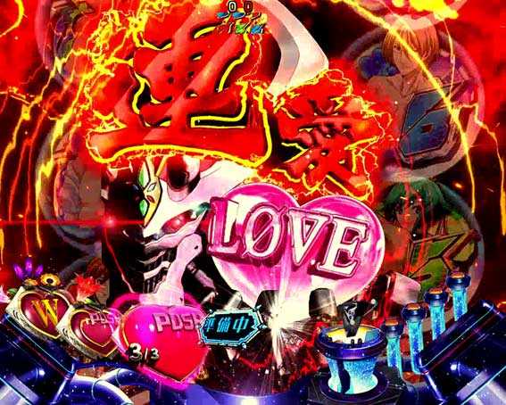 リーチ後演出 | ・指令演出(不動ZEN) ・合体演出(W合体) ・気持ちいいカットイン ・LOVE CHANCE ZONE ・LOVE CHANCE ZONE SUPER ・エクスタシーZONE ・一万二千年前チャンス |
