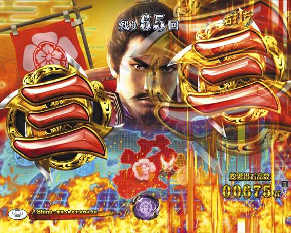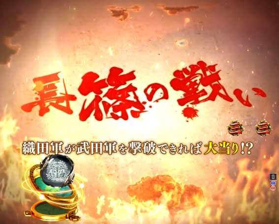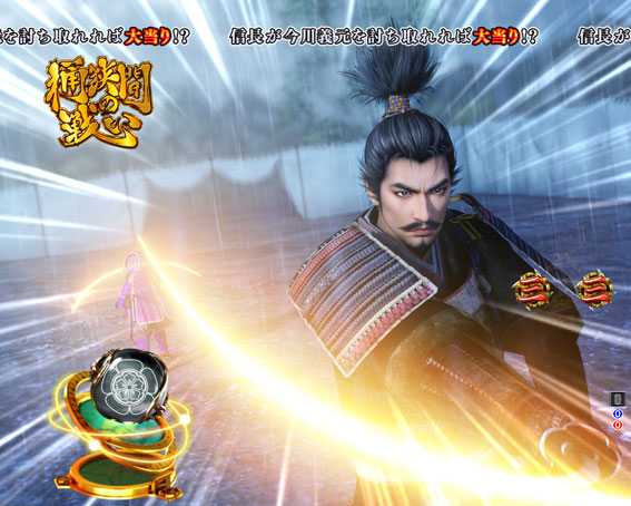 最も信頼度が高い本機最強リーチ。本陣へ乗り込んだ織田信長が今川義元を討ち取れば大当り!?