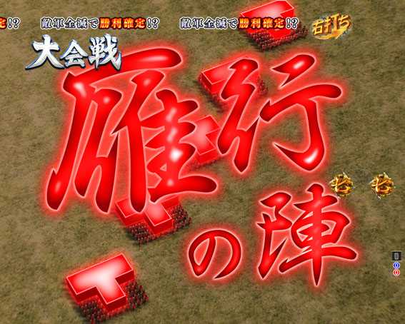 敵軍を全滅させれば大当り。陣形パターンによって信頼度が変化。