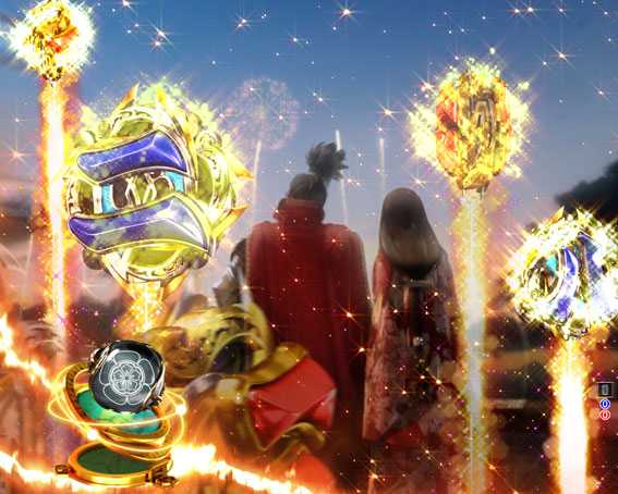 演出面では、大砲役モノが進化した「極大砲可動体」と、液晶全体を覆い尽くす巨大ギミック「極家紋可動体」が迫力満点。その他では「覇王進撃ゾーン」「大廻天連続演出」「剣舞演出」「決戦系リーチ[大砲]」「極熱カットイン演出」「ストーリーリーチ 桶狭間の戦い」の六大極演出が注目だ。