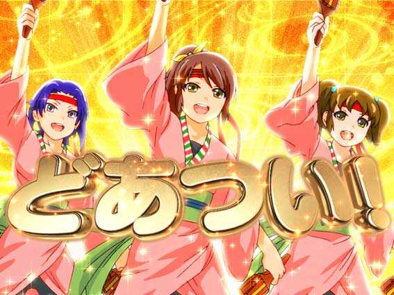 演出に関しては、祭りの実写映像を使用した「実写演舞リーチ」に発展すれば期待大だ。中でも「どまつりリーチ」は、本機のモチーフである「にっぽんど真ん中祭り(通称どまつり)」の名を冠した最強リーチとなっている。他にも、祭りを盛り上げてくれる三大役モノにも注目しよう。キャラクター役モノは液晶上に飛び出すとチャンス!? シャッター役モノは閉じれば実写演舞リーチに発展!? どまつりロゴ役モノ発動時は大チャンスとなるぞ。