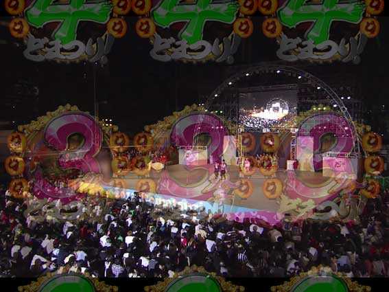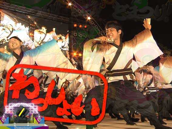 アニメキャラが華麗な演舞を披露するリーチ。どまつりの総踊りで定番の3曲で大当りを狙う!