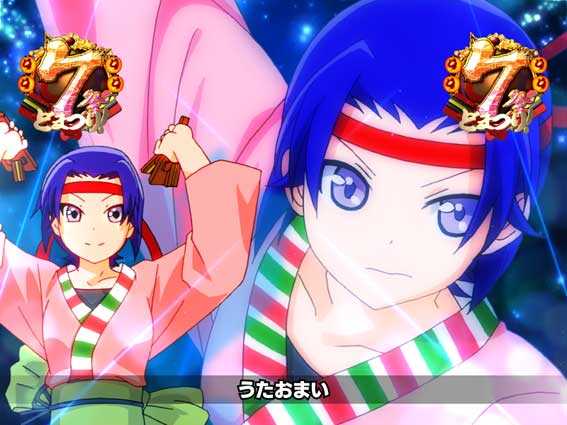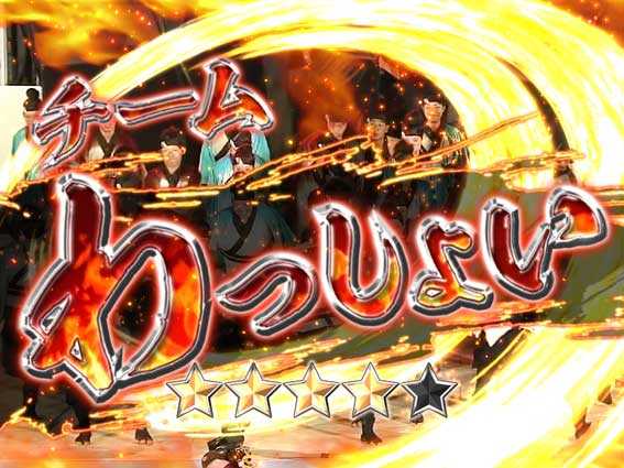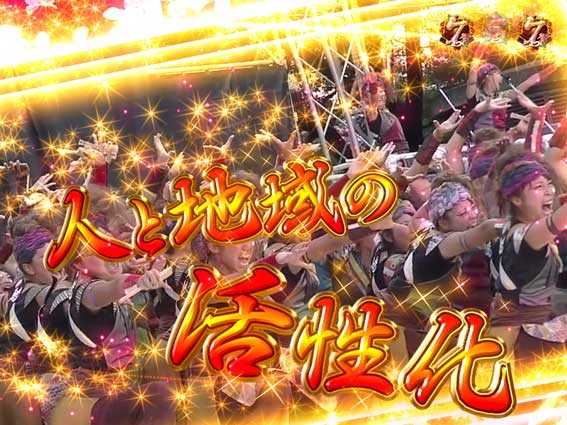 どまつりの人気チームが迫力の演舞を披露する実写系リーチ。演出は3種類で、「わっしょい」が最も高信頼度となっている。