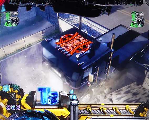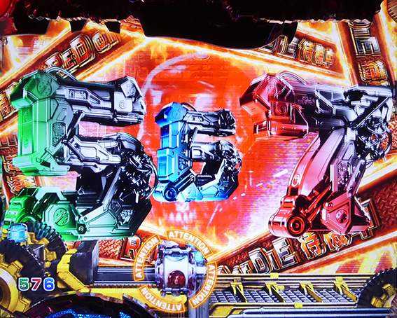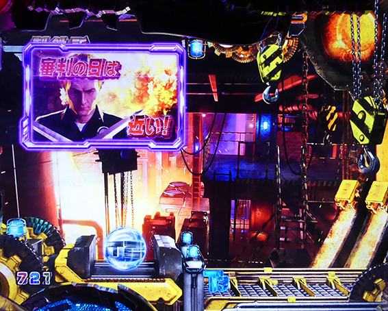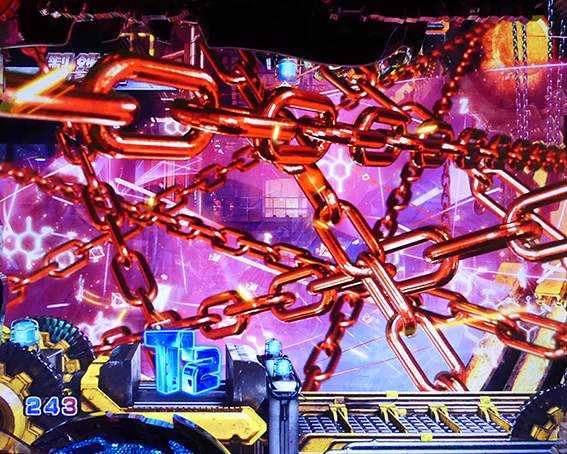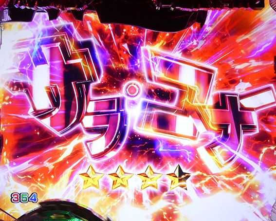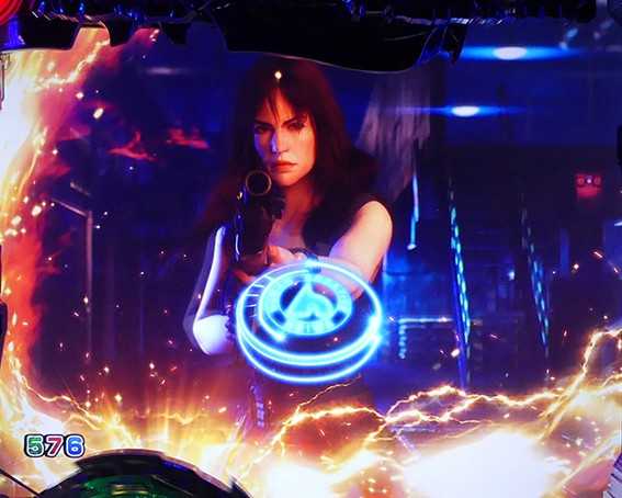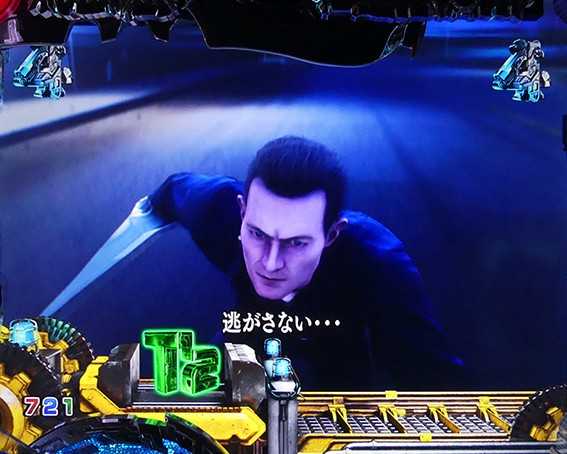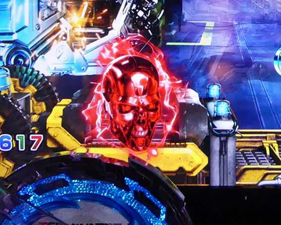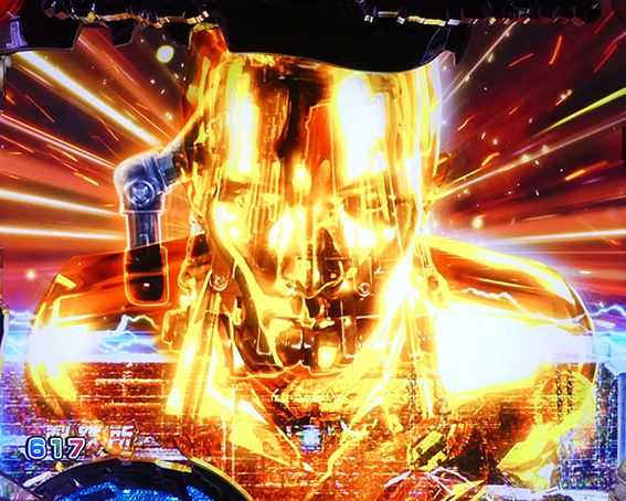 突如レバーが出現するチャンスリーチ。引いて役モノが発動すれば「TRIPLE HYPER BONUS」濃厚だ。時短中のリーチの中では信頼度が高く、「T-1000撃破リーチ」の2人同時攻撃時に匹敵する。