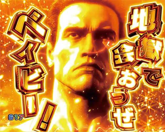 発展した時点で大チャンスとなる高信頼度リーチ。バトル決着の瞬間を描いた「映画クライマックスリーチ」と、T-1000登場シーンをまとめた「T-1000名場面リーチ」の2種類存在するが、信頼度の差はほとんどナシ。名シーンを堪能しよう。
