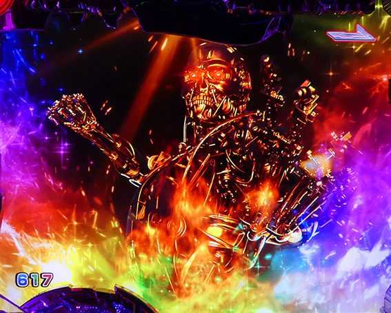 先読みなどで発生し、T-800やT-1000がイルミ上に出現。イルミの色は「青<緑<赤<金」の順でチャンスとなるようだ。