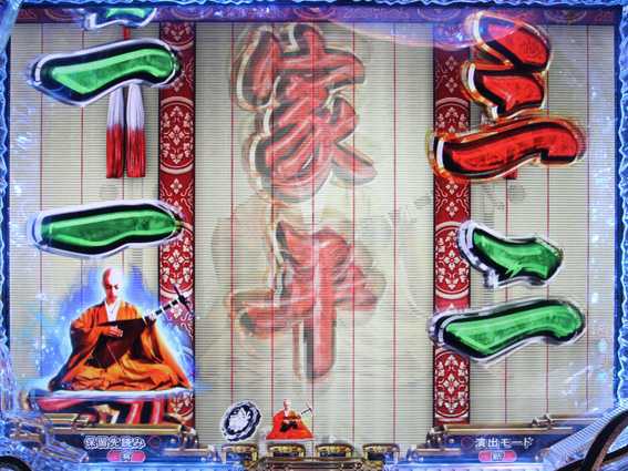 テンパイ後にミニ法師が琵琶を弾くとSP発展のチャンスで、 4回なら発展濃厚 |